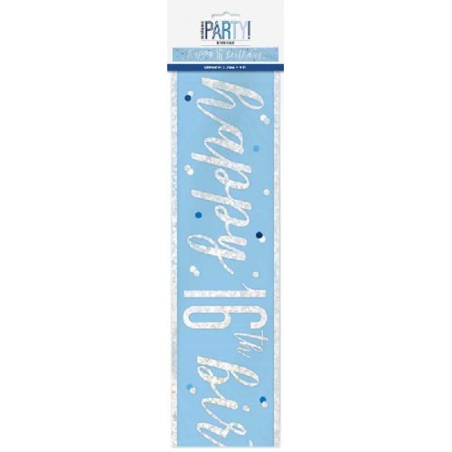 A 9 foot blue glitz Happy 16th Birthday banner