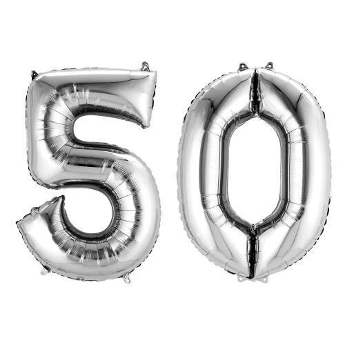 • Age 50 Silver Foil Balloons With Helium,