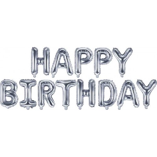Air Fill Foil Balloon Happy Birthday 340x35cm silver