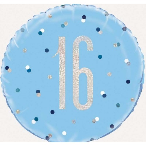 18IN 16TH B/DAY BLUE HOLO FOIL