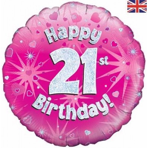 • 18IN 21ST B/DAY PINK HOLO FOIL